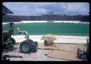 (Plus, synthetic turf in 1979 had a layer of asphalt beneath it, and the surface was more like carpet, and less imitative of swaying blades of grass as with later synthetic turf, which made skin abrasions more likely—if a player hit the ground and skidded. Ouch. And surface temperatures on early synthetic turf could be as much as 80° hotter than on grass. Whew.)