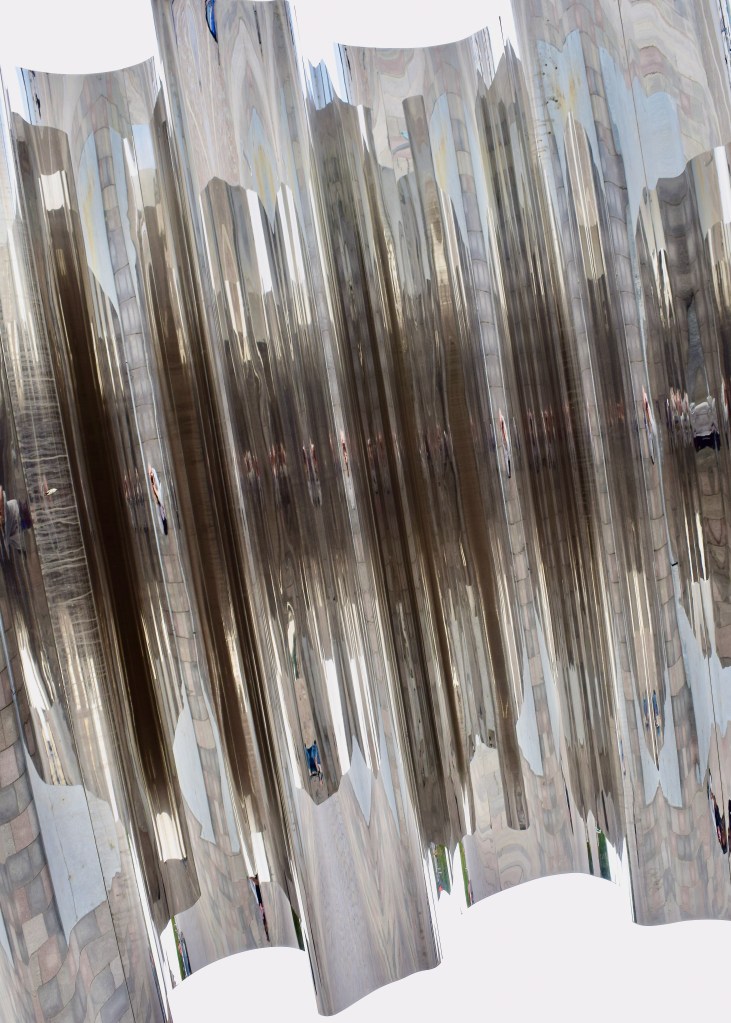 Many passersby stroll through that opening, amused by their images distorted by the curved, polished, shiny interior, reminiscent of fun-house mirrors that make us comically thin or wide, or weirdly misshape our heads. Children laugh, pointing at their goofy face—or Mom’s or Dad’s.