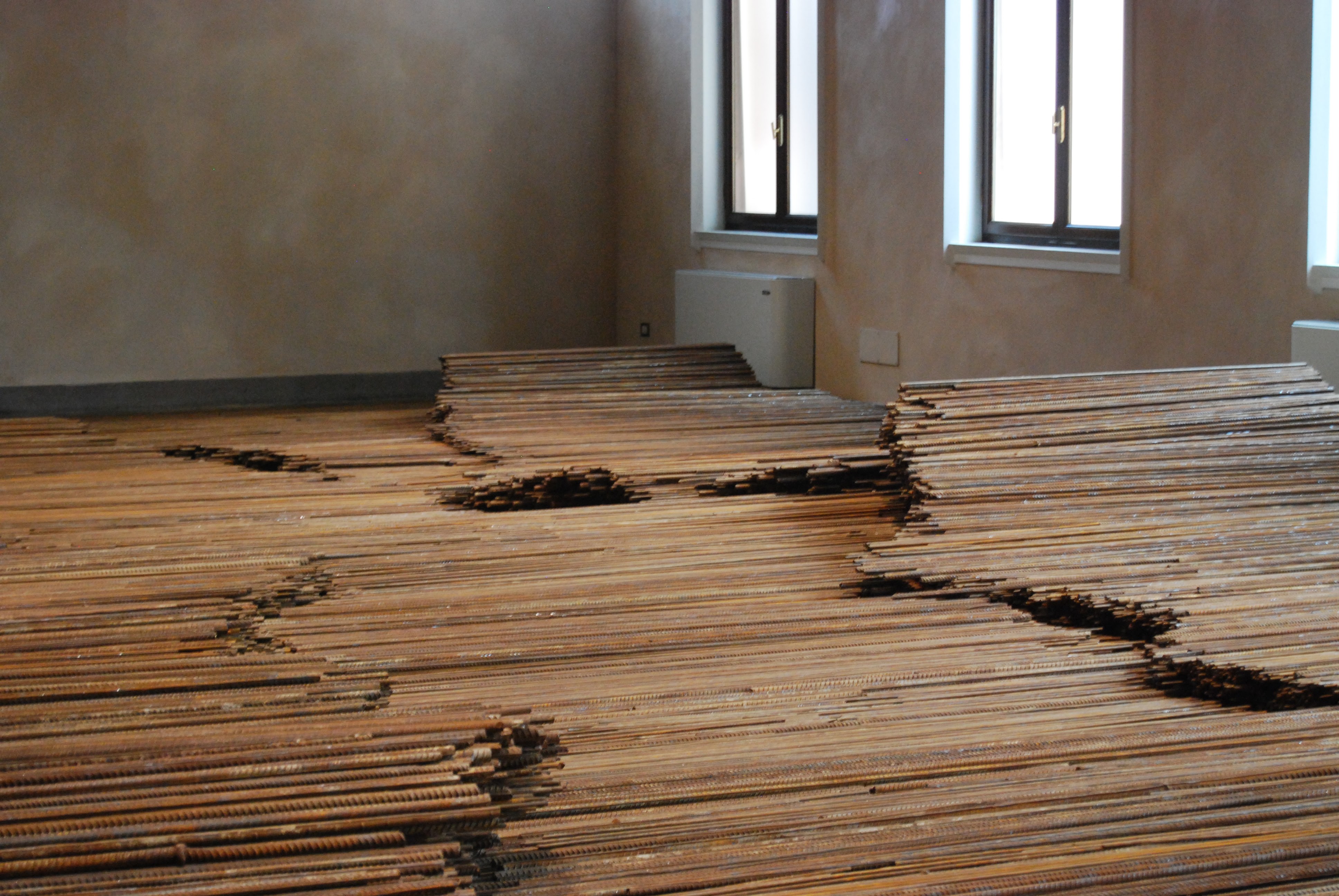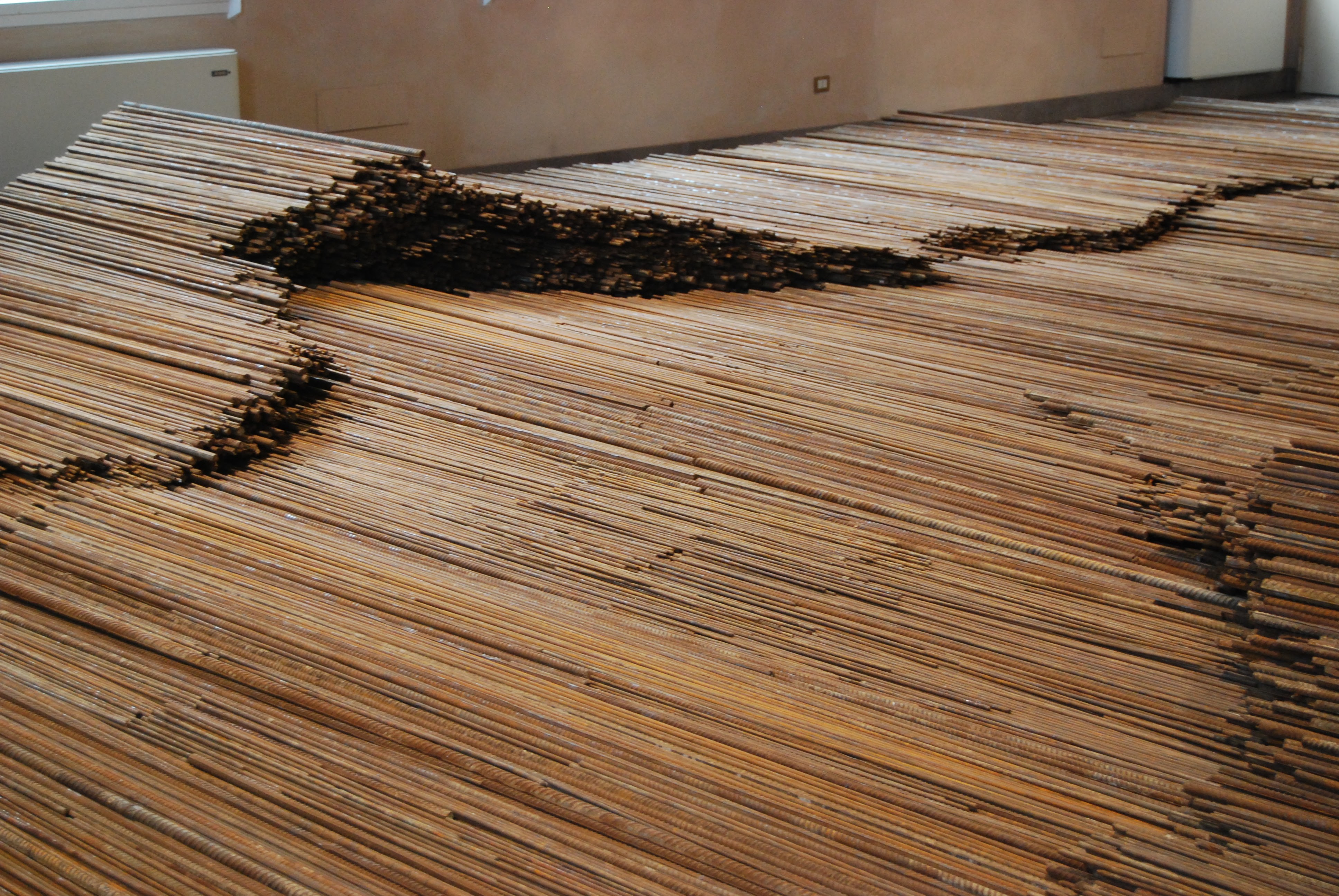 After the 8.0-magnitude earthquake in Sichuan province in 2008, Ai led an effort to memorialize the names of over 5,000 children who perished in poorly constructed schools that collapsed, while many nearby buildings remained standing. For the 2013 Venice Biennale, Ai created an installation, entitled “Straight,” composed of 150 tons of twisted, contorted steel rebar clandestinely salvaged from the rubble of schools destroyed by that earthquake. Ai’s team hand-straightened each metal bar.